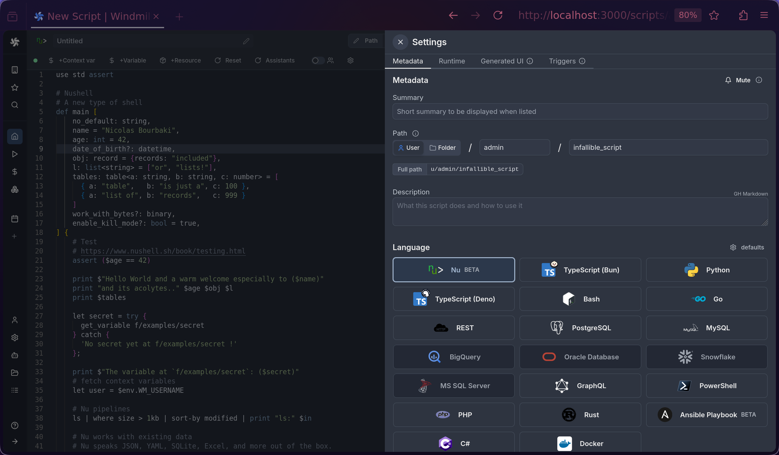 - Built-in helpers for accessing Windmill variables and resources.